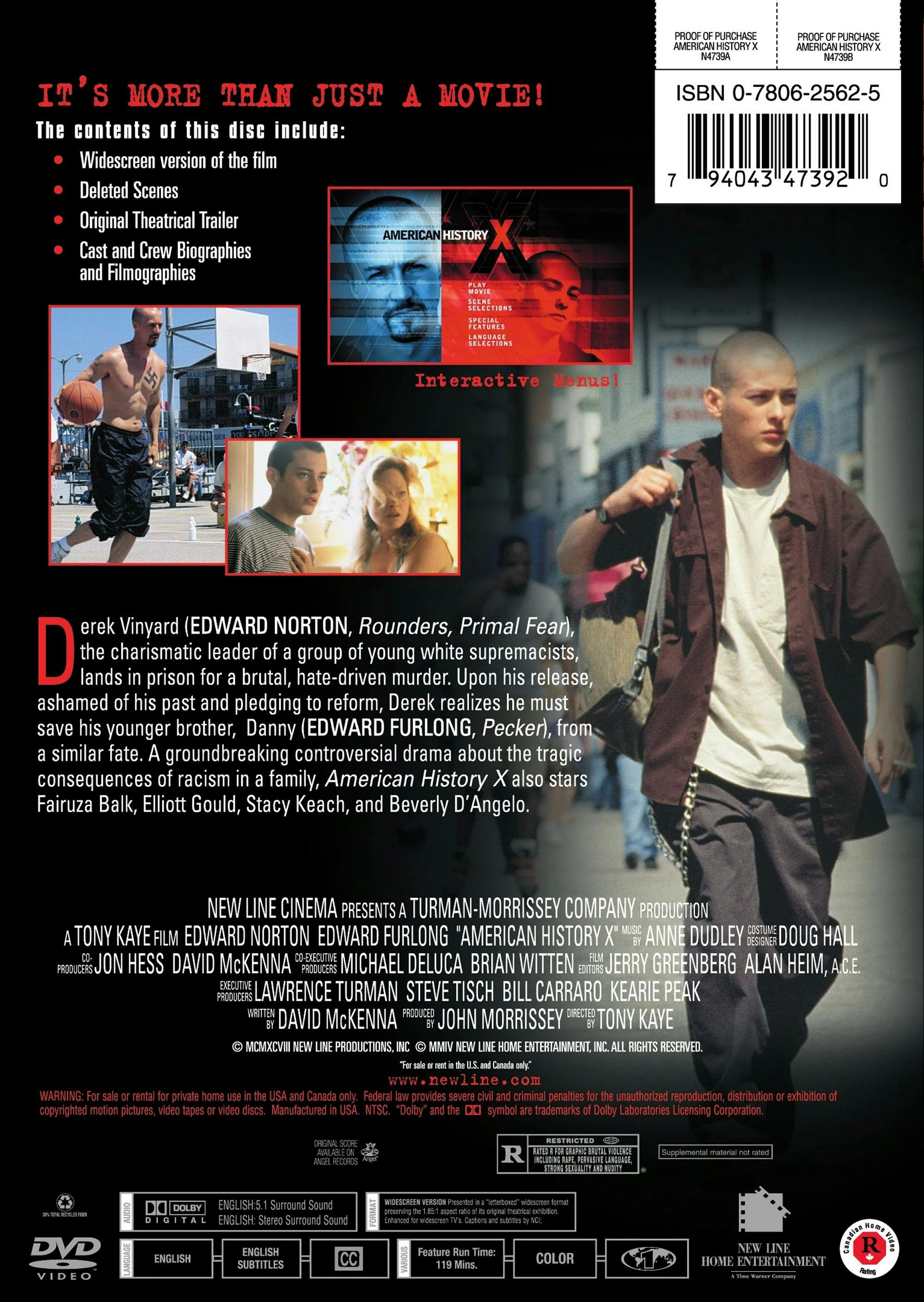 Edward Norton's Academy Award nominated role as a White Supremist who sees the error of his ways while jailed for murder. Unfortunately, he leaves prison to find his brother (Edward Furlong) heading down the same path.